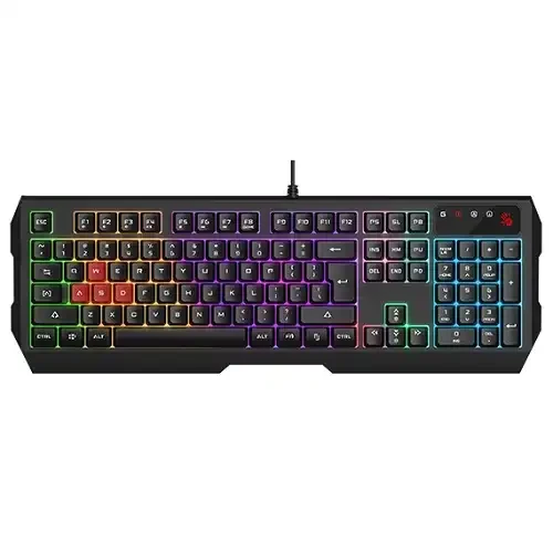 Model: FK11 Sleek Round-Square Keycaps Multimedia Hot Keys Access Drain Holes Design English with Bangla front on keys